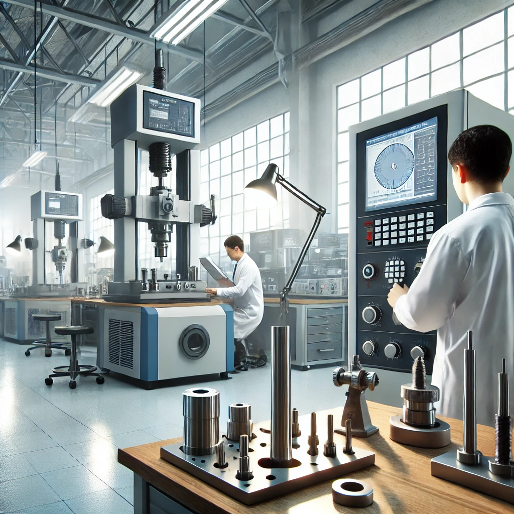 DALL·E 2024-06-18 22.37.53 - An image showing a modern industrial laboratory where technicians are performing precise measurements using high-tech measuring devices like Vickers h