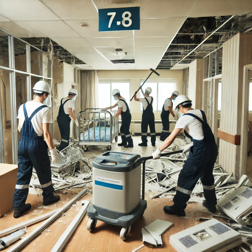 DALL·E 2024-06-21 16.06.24 - A team of professionals from Reusmile performing an interior demolition of a care facility. The team is carefully removing fixtures and equipment, ens