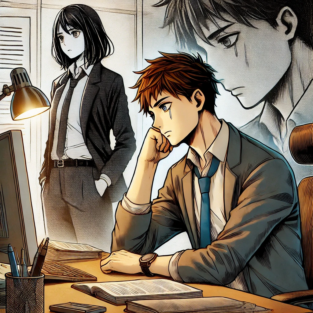 DALL·E 2024-08-16 14.13.25 - Create a manga-style image representing the theme 'the struggles from a difficult time in a corporate job were not in vain.' The image should feature