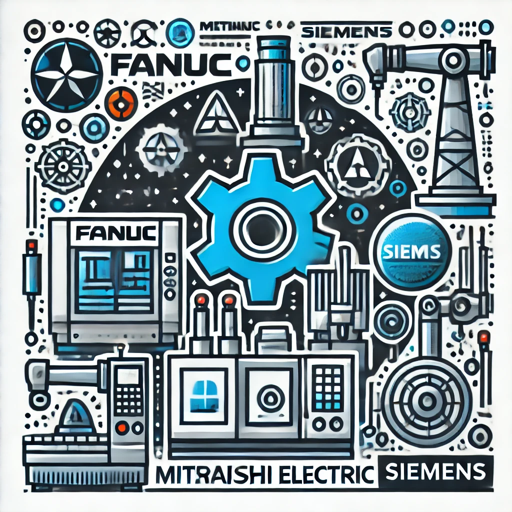 DALL·E 2024-12-11 20.36.48 - An illustration showing logos or representations of well-known industrial equipment manufacturers like FANUC, Mitsubishi Electric, and Siemens. Highli