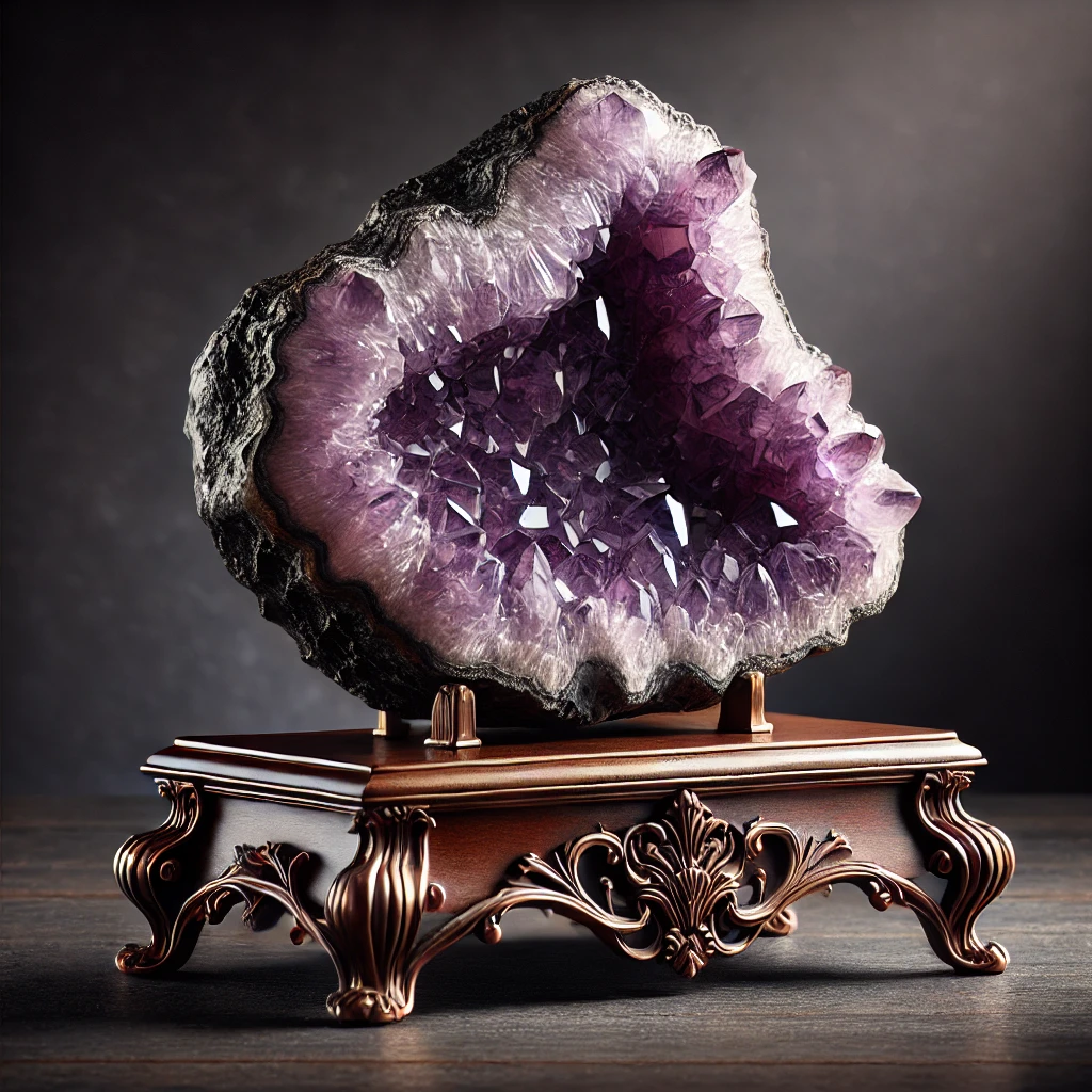 DALL·E 2025-03-13 12.54.53 - A luxurious and elegant image of a high-value amethyst geode display piece. The geode should have a deep purple color with well-defined crystals, plac